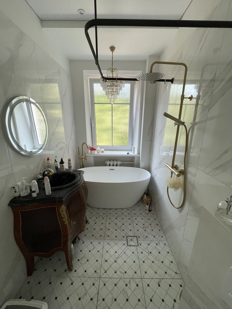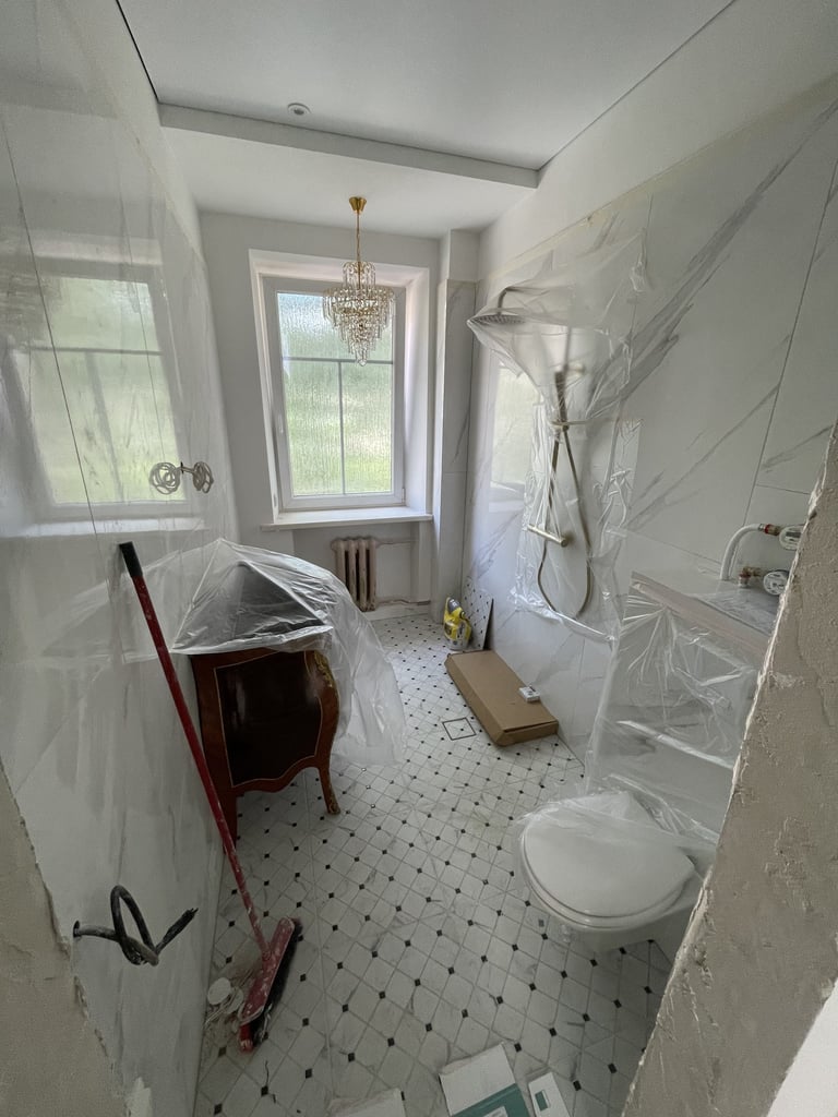 Naujos santechnikos ir elektros instaliacija: Pravesta nauja santechnika ir elektra, atsižvelgiant į modernaus sanitarinio mazgo poreikius.