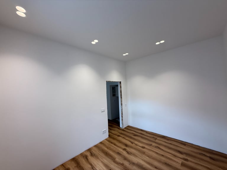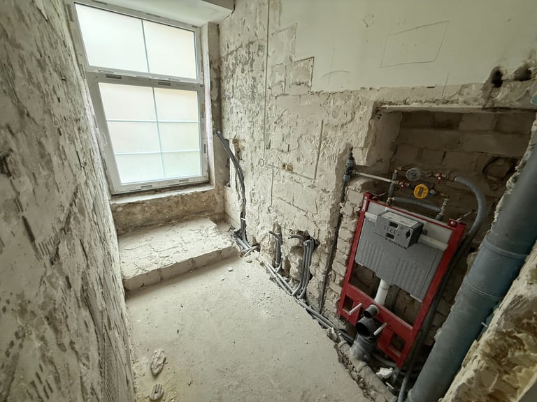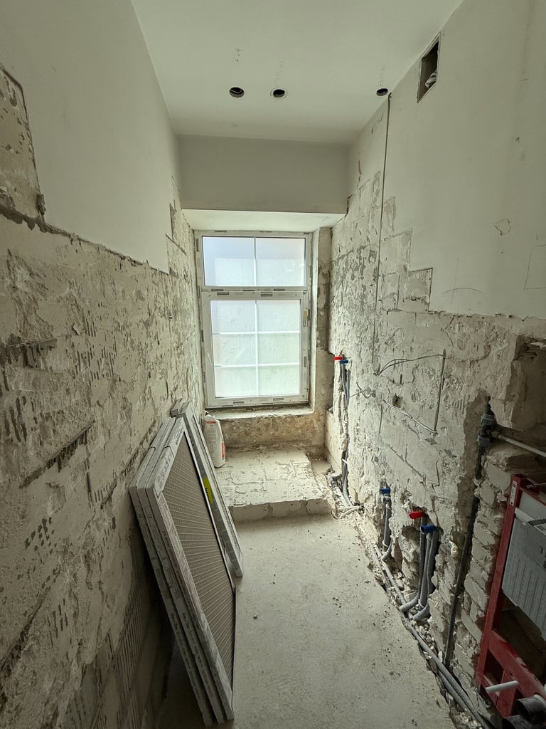 Pravedžiota nauja santechnika ir elektros instaliacija, pritaikyta atnaujintam išplanavimui ir šiuolaikiniams poreikiams.