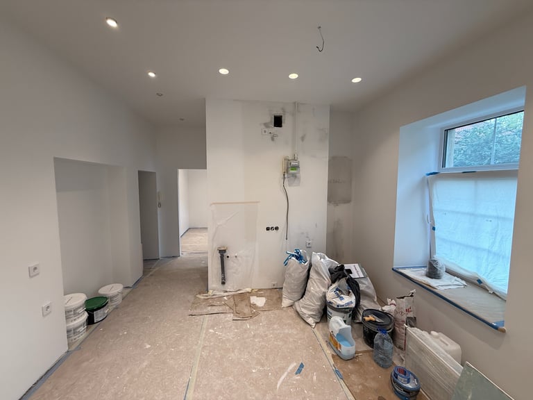 Seno plytinio namo buto remontas pagal dizainerės brėžinius: pilna apdaila ir inžinerijos atnaujinimas.