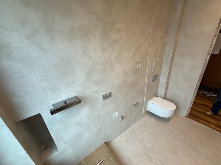 Atlikta pilna apdaila pagal dizainerės brėžinius – nuo paruošiamųjų darbų iki išbaigtų paviršių ir detalių.