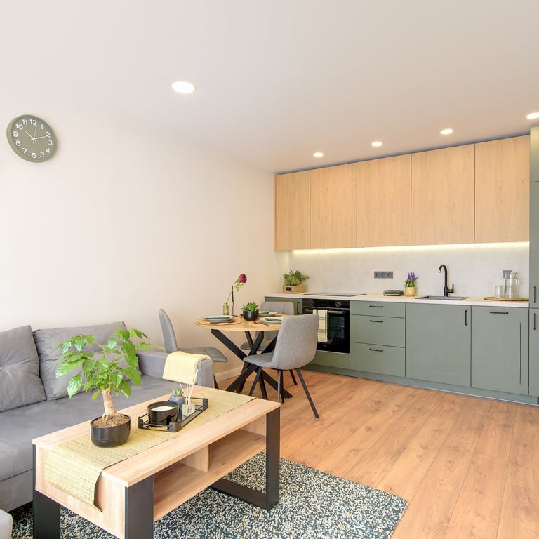 Rezultatas: Funkcionaliai ir estetiškai įrengtas butas, pritaikytas tiek gyvenimui, tiek investicijai, kuris patenkina šiuolaikinius gyventojų poreikius.