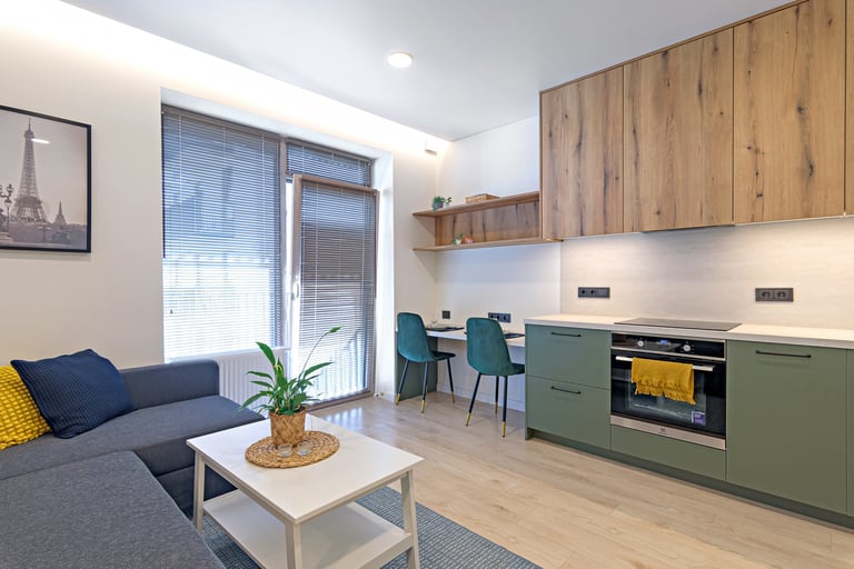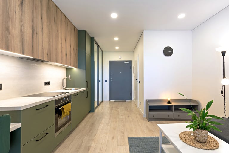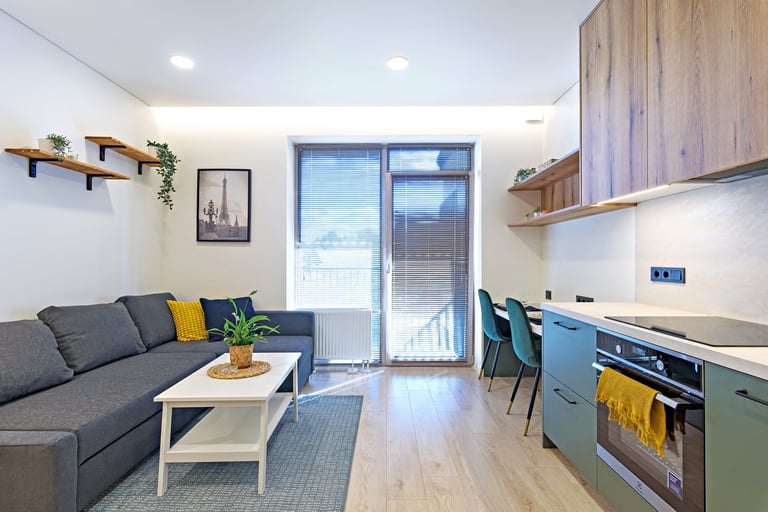 Po atliktų darbų naujos statybos butas tapo šiuolaikiška ir patogia gyvenamąja erdve, kurioje dera modernumas, funkcionalumas ir jaukumas. Kiekviena detalė – nuo baldų iki apdailos sprendimų – apgalvota siekiant užtikrinti gyvenimo komfortą ir estetinį pasitenkinimą.
